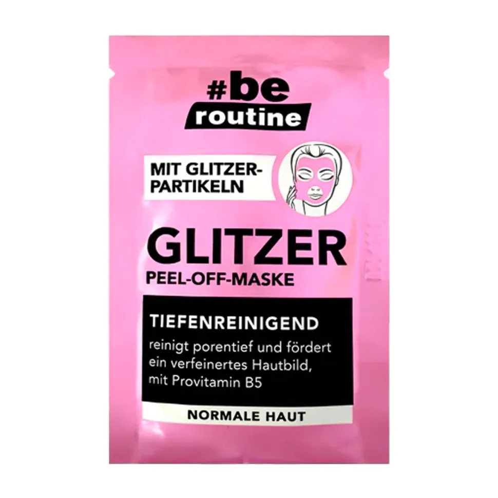 #be routine Glitzer Peel-Off Mask limpia la piel y elimina las células muertas de la piel, los puntos negros y la grasa.