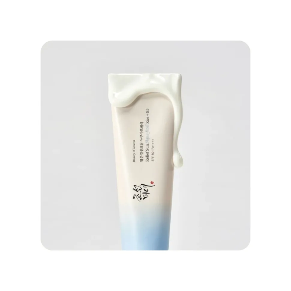 Para nosotros BEAUTY OF JOSEON Relief Sun Aqua Fresh Rice + B5 SPF 50 PA++++ es la protección solar perfecta 🌞💧