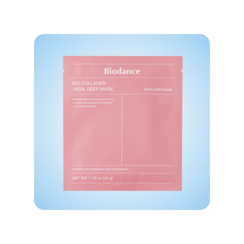 La mascarilla coreana Bio Collagen Real Deep Mask de Biodance es una mascarilla facial innovadora de dos partes (para la zona superior e inferior del rostro), diseñada para hidratar intensamente y mejorar la elasticidad de la piel.