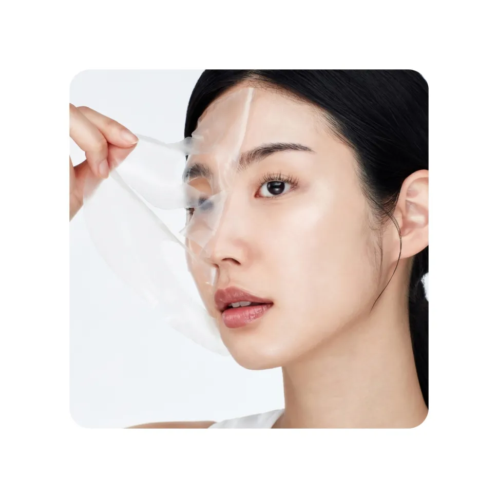 2️⃣ Retira la película protectora y coloca ambas partes sobre el rostro.