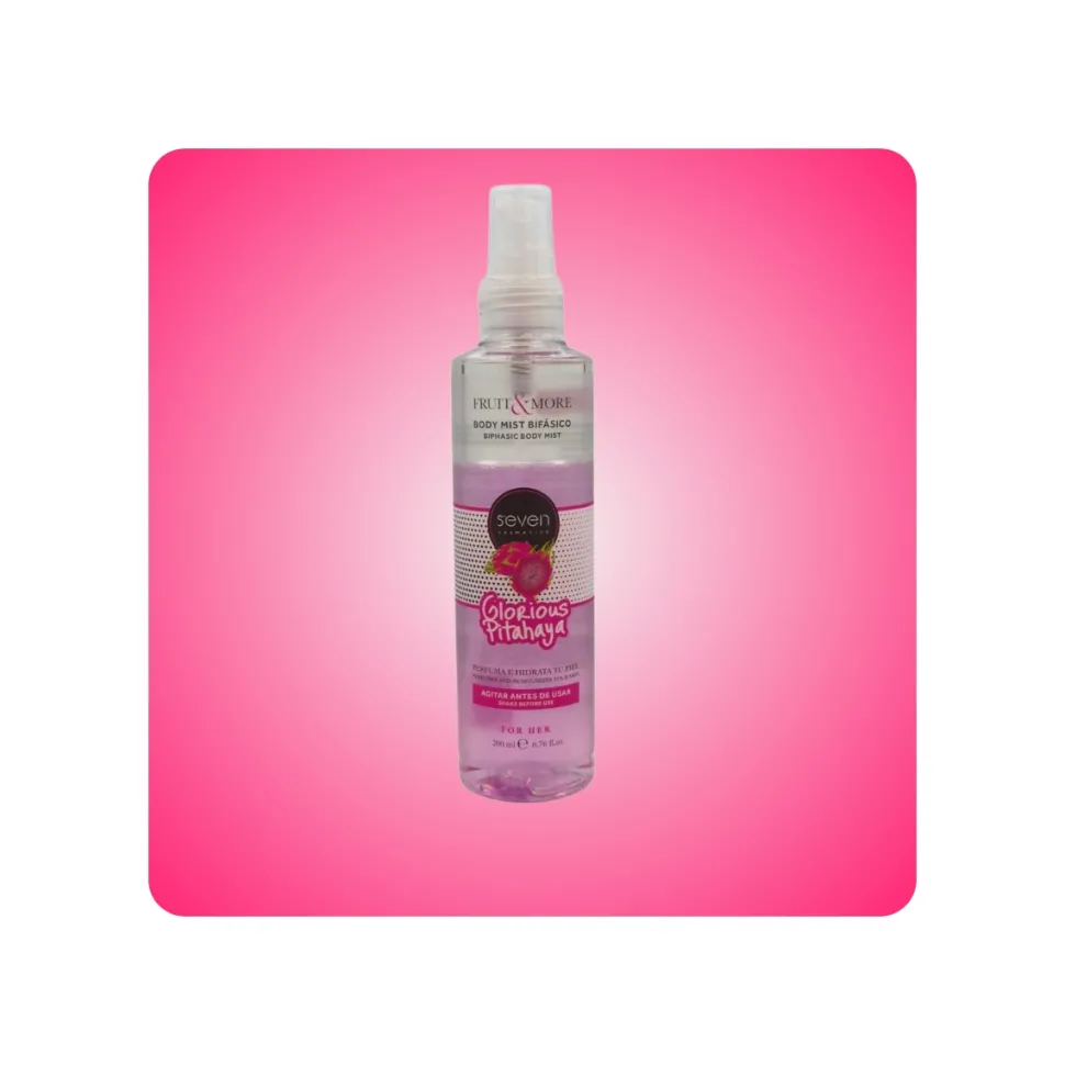 🌸 Bruma Corporal Bifásica Glorious Pitahaya – Seven Cosmetics. Hidrata, perfuma y revitaliza tu piel en un solo gesto.