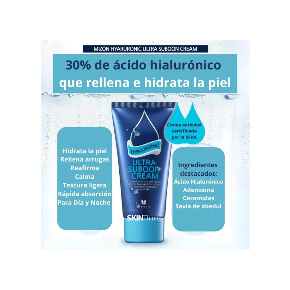 Mizon Hyaluronic Ultra Suboom Cream está recomendada para todos los tipos de piel, pieles secas, mixtas, deshidratadas y sensibles.