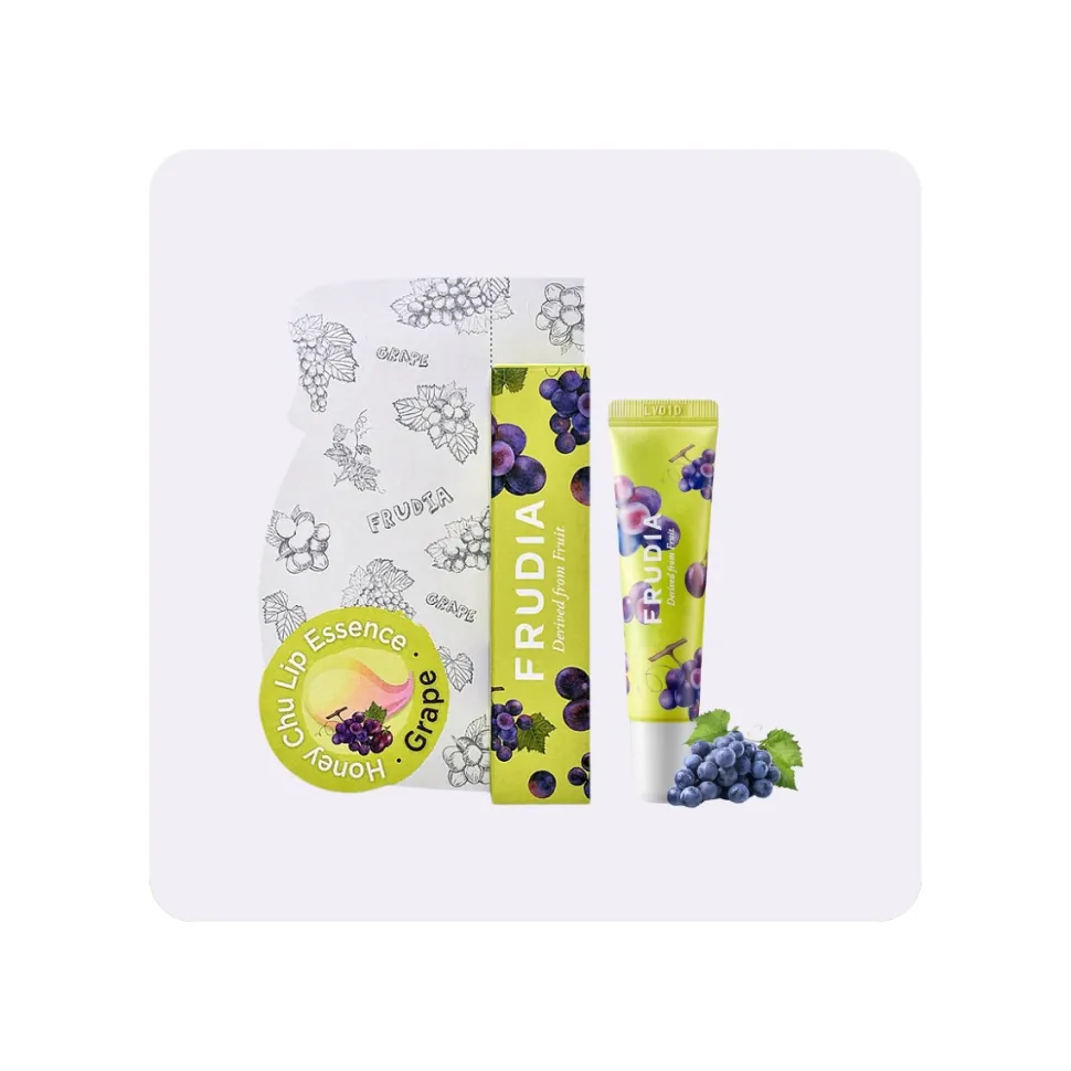 El bálsamo labial Frudia Grape Honey Chu Lip Essence repara los labios secos y ásperos, se sienten flexibles al instante y se llenan de vitalidad gracias al color rosa natural.