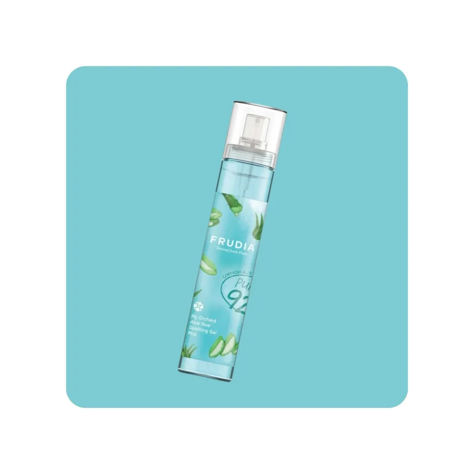 - Después de limpiar tu rostro, aplica Frudia My Orchard Aloe Real Shooting Gel Mist 98% como un tónico hidratante.
