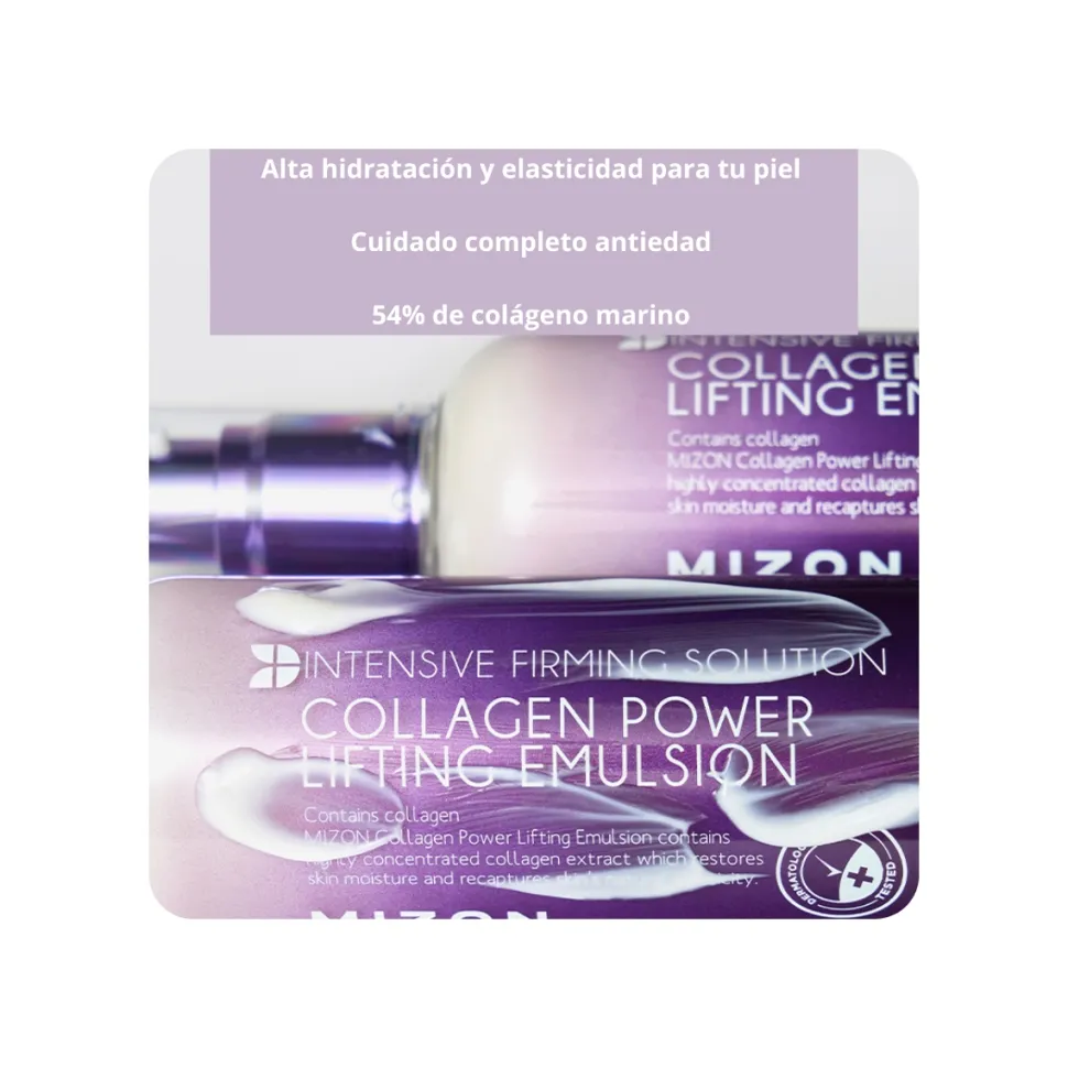 Mizon Collagen Power Lifting Emulsion es una crema que nutre la piel y la hidrata, reafirma y ofrece un cuidado antiedad completo. Y su textura es ligera.