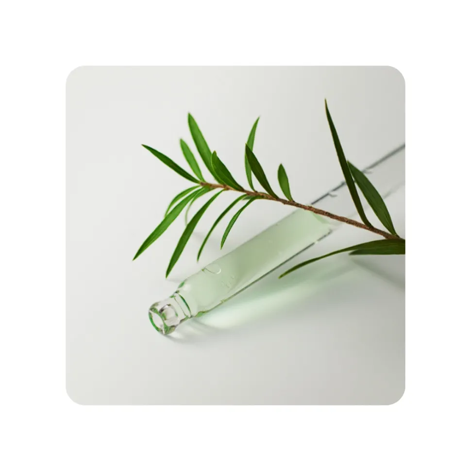 10.000 ppm de Extracto de Árbol de Té: que equilibra la piel grasa, es antiinflamatorio y antibacteriano.