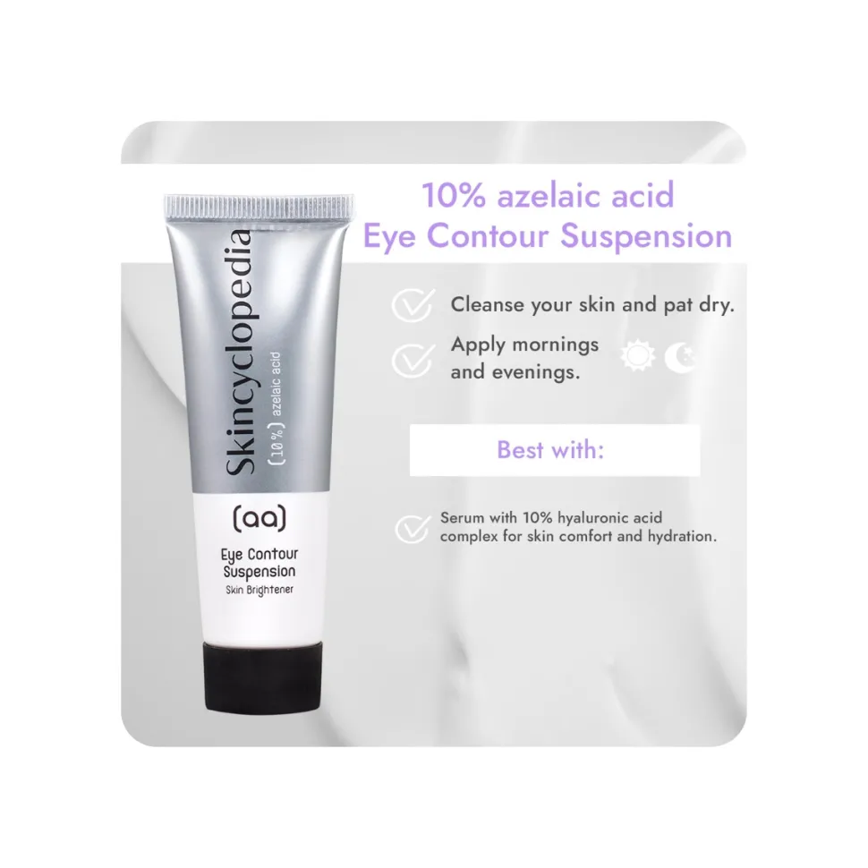 El Contorno de Ojos Iluminador con Ácido Azelaico 10% de Skincyclopedia es una fórmula innovadora diseñada para rejuvenecer y revitalizar la delicada piel alrededor de los ojos.