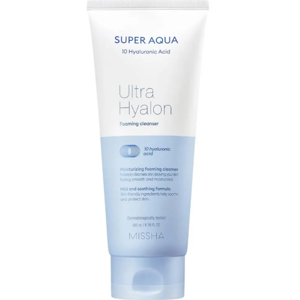 Hidratar y limpiar la piel en un solo paso. La espuma Missha Super Aqua Ultra Hyalon Foaming Cleanser contiene 10 tipos de ácido hialurónico que penetran en la piel y retienen la hidratación, pero a la vez es muy efectiva para limpiar el maquilllaje y la suciedad de los poros.