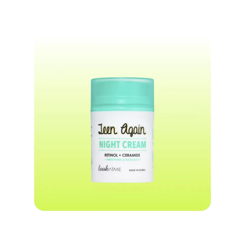 La LOOK AT ME Teen Again Night Cream es tu tratamiento nocturno de alta concentración que trabaja mientras descansas. Con retinol encapsulado y ceramidas reparadoras, esta fórmula coreana avanzada activa los procesos naturales de regeneración celular para que amanezcas con una piel visiblemente más joven, firme y luminosa.