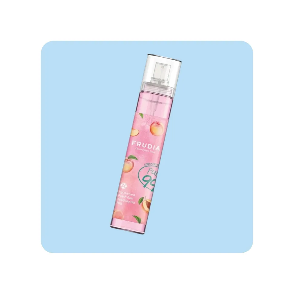 ¿Quieres una piel hidratada, fresca y calmada al instante? Frudia My Orchard Peach Real Shooting Gel Mist 99% es perfecta para ti.