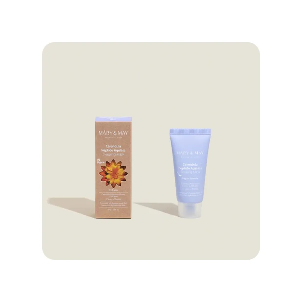Mary & May Calendula Peptide Ageless Sleeping Mask es una mascarilla nocturna anti-edad y reparadora.