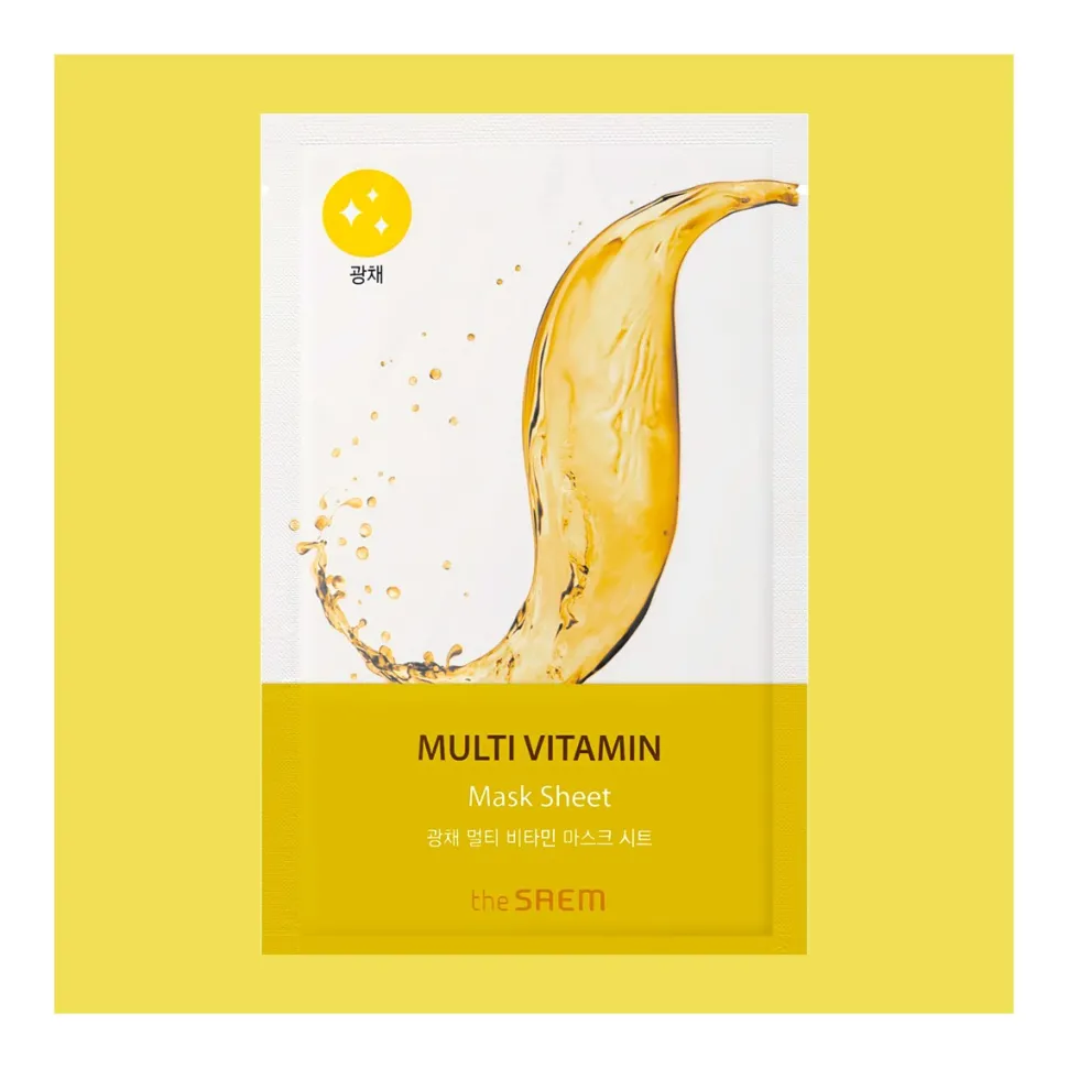 The Saem Bio Solution Radiance Multi Vitamin Mask Sheet contiene pantenol, vitamina C, biotina, vitamina E, retinol, vitamina B6, además de extractos vegetales, miel, alantoina….