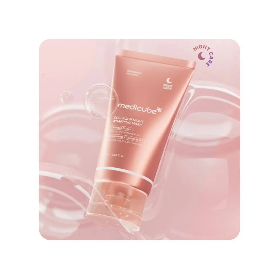 Renueva tu piel mientras duermes con la Collagen Night Wrapping Mask de Medicube, una mascarilla facial nocturna tipo «peel-off» que actúa durante la noche para reafirmar, hidratar y suavizar visiblemente la piel. Gracias a su innovadora tecnología de película envolvente de colágeno, los ingredientes activos se absorben profundamente durante 8 horas, logrando un efecto reafirmante, regenerador y antiarrugas sin esfuerzo.