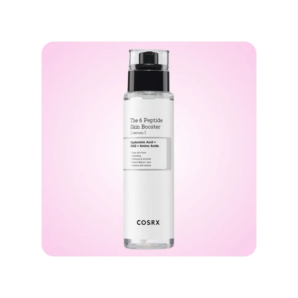 COSRX The 6 Peptide Skin Booster Serum es un serum coreano con péptidos diseñado para mejorar firmeza, textura y luminosidad mediante una combinación de 6 péptidos específicos, niacinamida y ácido hialurónico. Ideal para todo tipo de pieles, incluidas las sensibles, que buscan un tratamiento antiedad eficaz sin complicaciones.