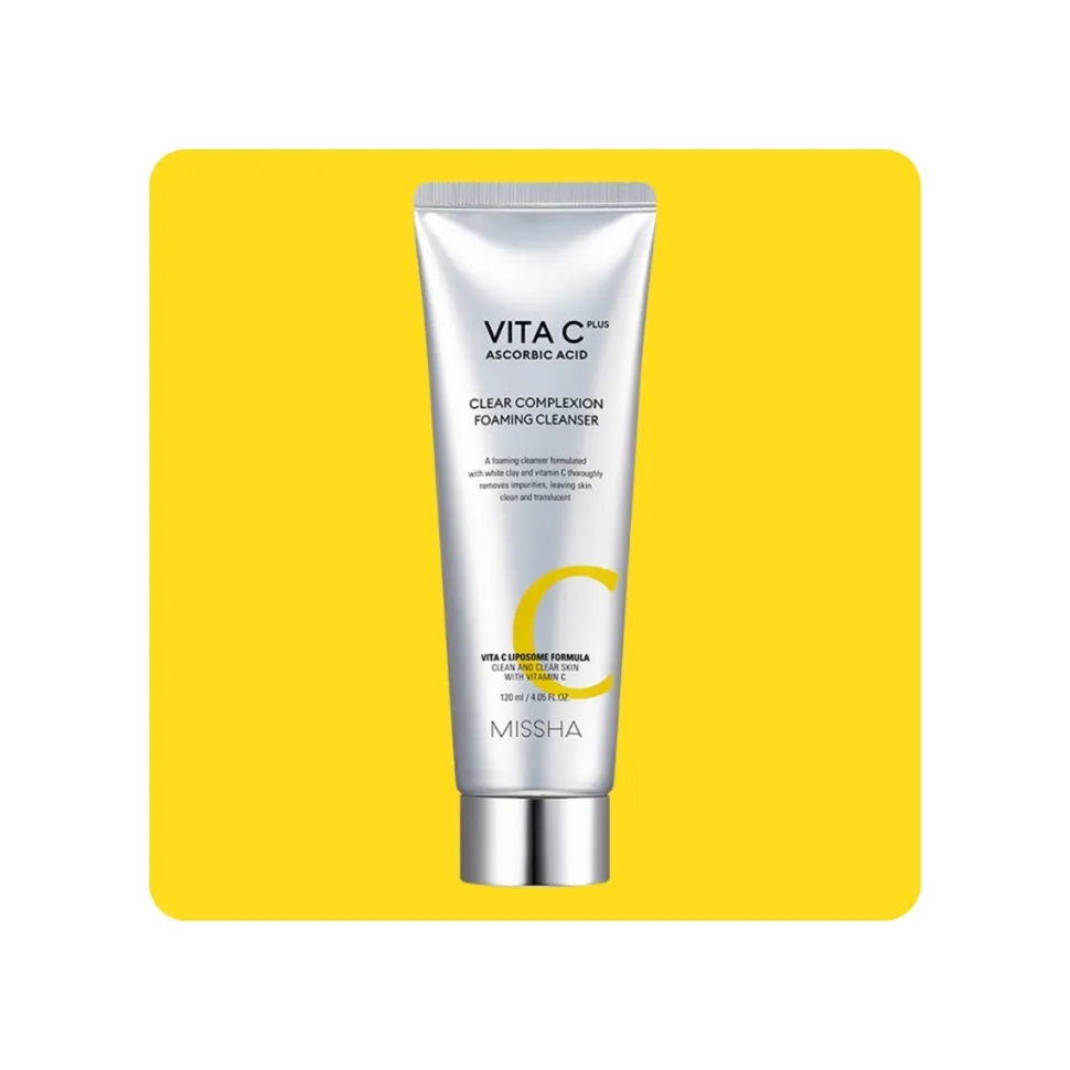 Missha Vita C Plus Clear Complexion Foaming Cleanser contiene vitamina C liposomiada y arcilla bentonita y caolin que iluminan la piel y ayudan a eliminar las impurezas que la vuelven opaca y sin vitalidad.